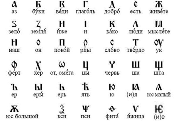 Буквы в кириллице - древнем алфавите для старославянского языка, составленном братьями Кириллом и Мефодием - носили значимые названия: "добро", "живете", "земля", "люди", "покой", "твердо"...